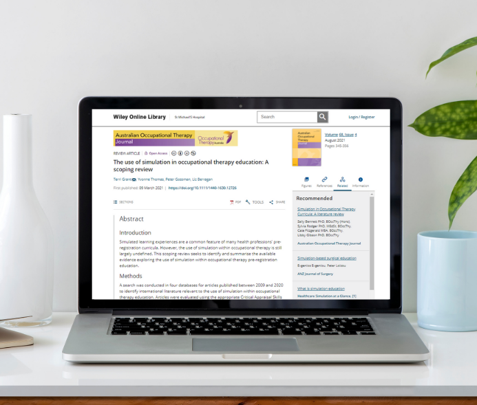 Simulated learning experiences are a common feature of many health professions’ pre-registration curricula. However, the use of simulation within occupational therapy is still largely undefined. This scoping review seeks to identify and summarize the available evidence exploring the use of simulation within occupational therapy pre-registration education.