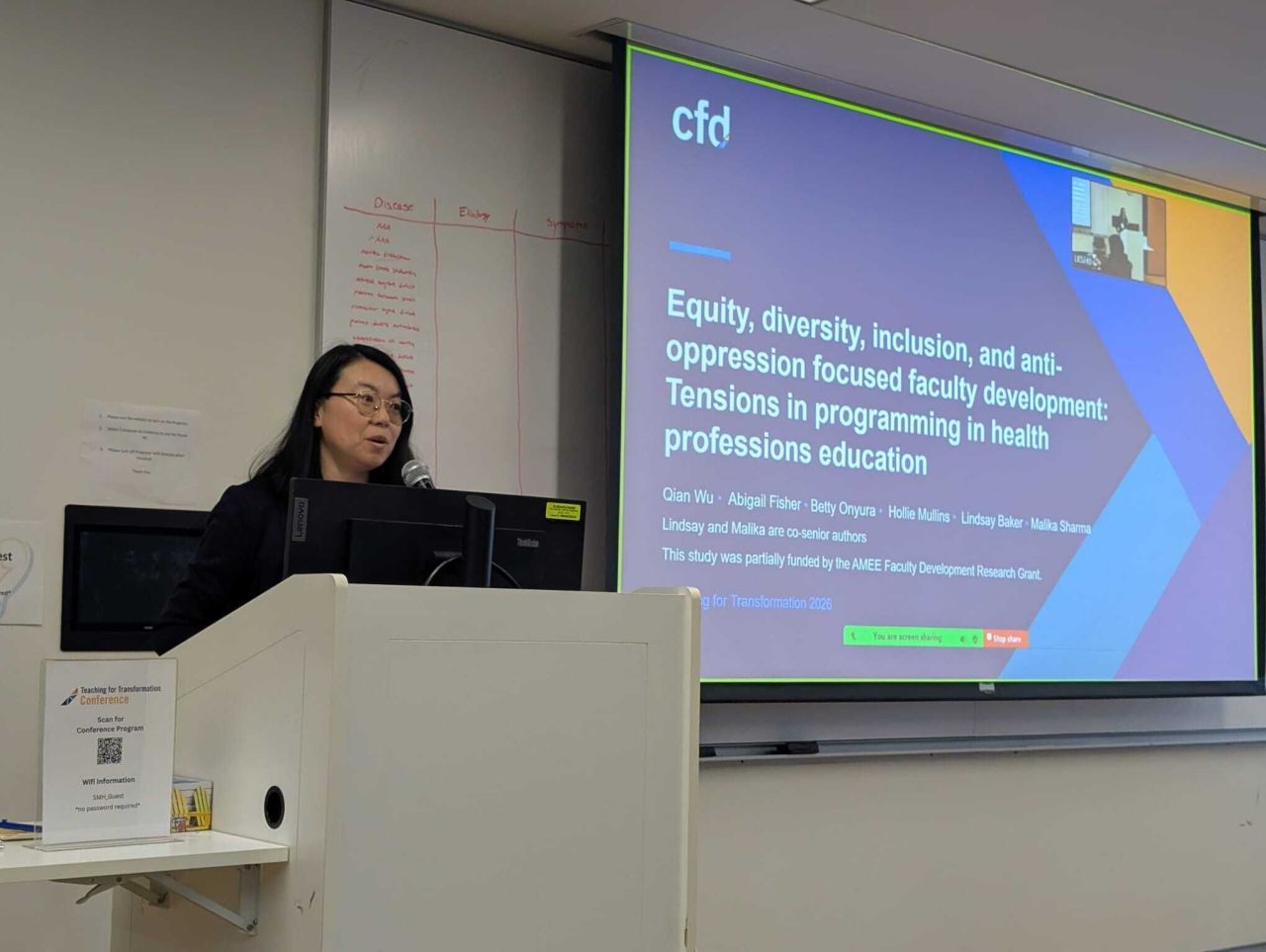 Qian Wu, on behalf of the project team with Abigail Fisher, Betty Onyura, Hollie Mullins, Lindsay Baker and Malika Sharma, presented a recently published study in Medical Teachers, titled “Equity, diversity, inclusion, and anti-oppression focused faculty development: Tensions in programming in health professions education”.